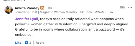 The Visionary Women Networking sessions attract brilliant leaders who have an established business, that are connected and generous- sharing wisdom and resources. It's all about helping each other with bringing your vision to life with more ease.
